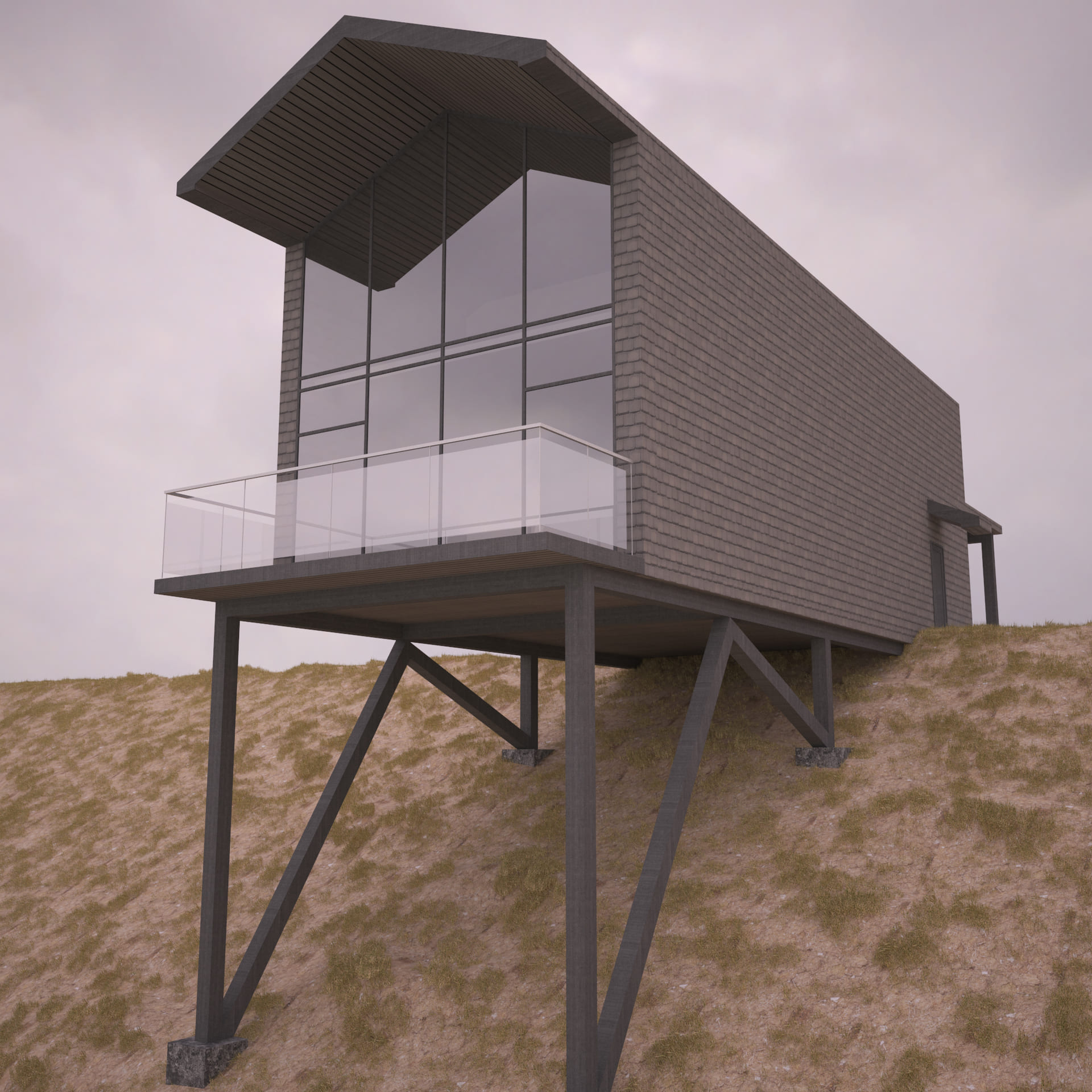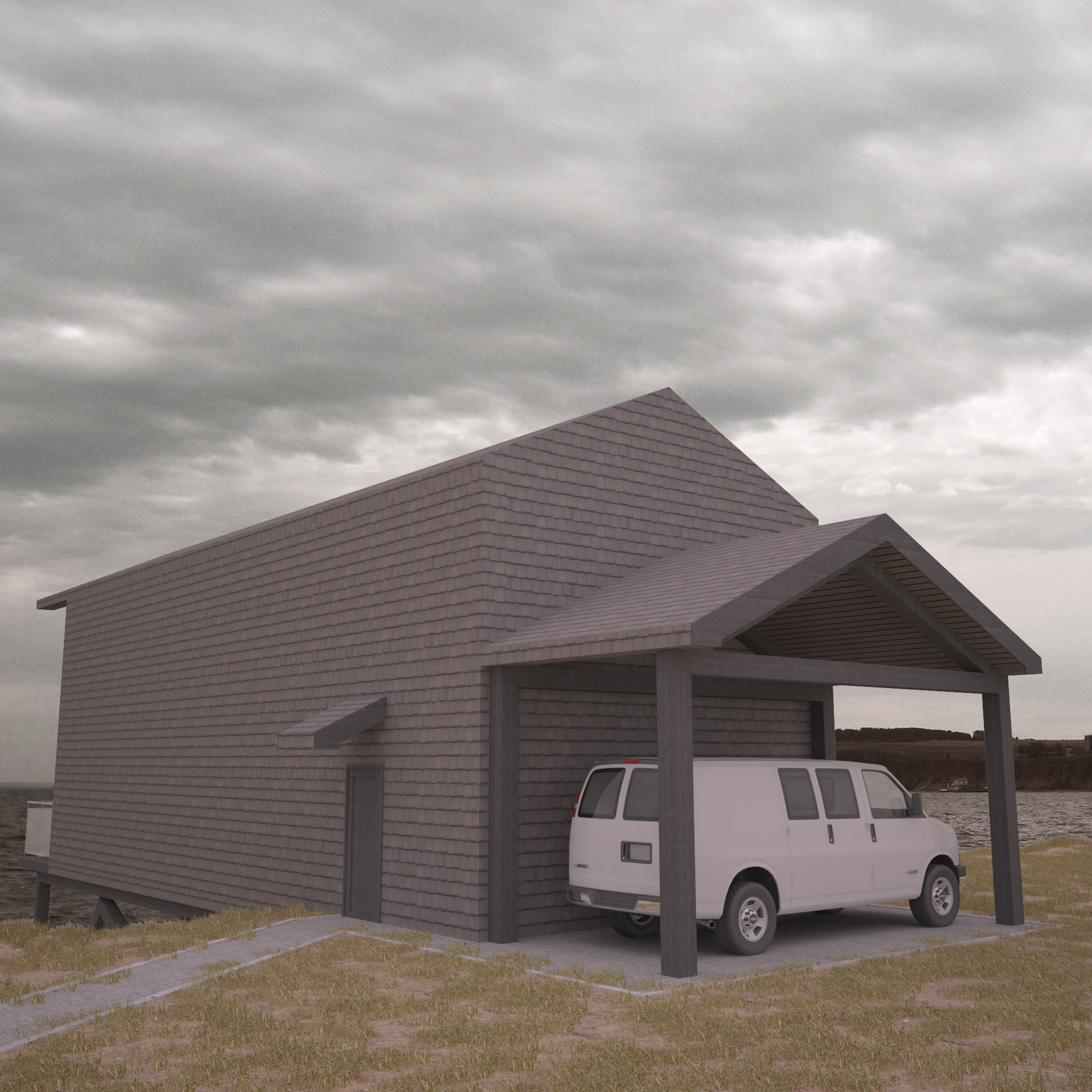 2 месяцаКак выше описано, заказчиком данного проекта выступил художник. Дом расположен в живописном месте степи. В техническое задание входило размещение мастерской художника и гостиной с кухней на первом этаже, спальни и приватная зона расположены на втором этаже. Проект, к сожалению не реализован.